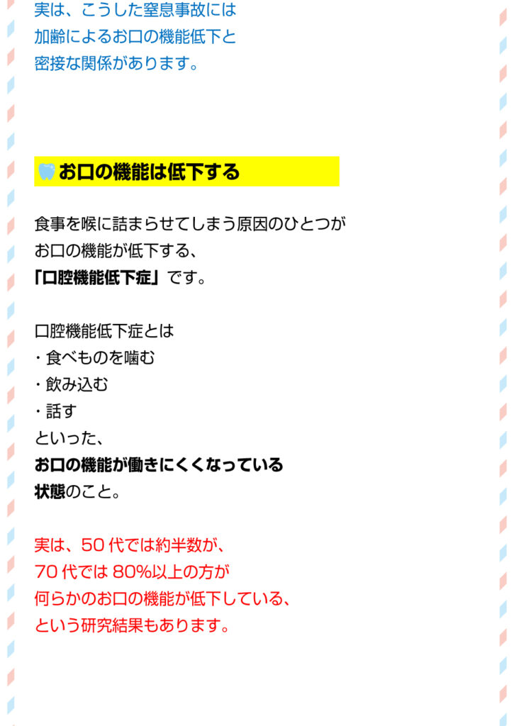 要介護の入口?! 口腔機能低下症とは?? 食事中 むせる方